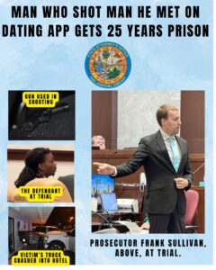 They agreed to meet at the defendant’s beach motel room. The defendant claimed it was only when he got in the truck that he realized it was a man, and he fired a shot out of fear when he saw an empty gun holster in the truck. The Bay County Sheriff’s Office investigation, however, showed through texts and messages that the defendant knew he was a meeting a man before the victim arrived. And jurors agreed.