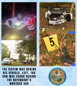 The Holmes County Sheriff’s Office responded and determined the defendant had been driving at a high rate of speed while under the influence of methamphetamine, cannabis, and alcohol. The Defendant’s father had fallen asleep in the passenger seat and was awakened to his son, the defendant, removing him from the flipped wreckage.