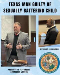 Prosecutor Jeffrey Moore, assisted by Prosecutor Jack Lyons, called two witnesses – including the victim – to prove the defendant sexually battered and molested her here in 2012. The jury took just over an hour to reach its verdict.