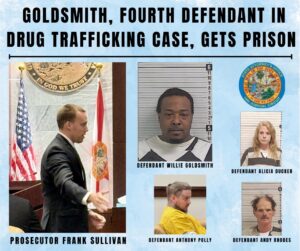 Willie Goldsmith, 39, of Lynn Haven, pled no contest and was adjudicated guilty of Trafficking in Fentanyl (more than 14 grams but less than 28 grams), and Trafficking in Amphetamine (28 grams or more). Circuit Court Judge Brantley Clark accepted the plea and sentenced Goldsmith to 20 years in prison. Judge Clark also ordered a $100,000 fine.