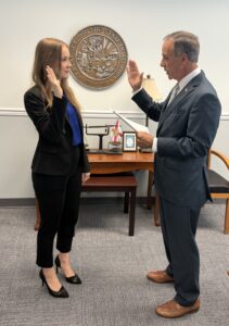 Bailey Harris, Daniele Thomas, and Nicholas White – already employed at the State Attorney’s Office as legal interns – were informed last week they had passed the Florida Bar exam. Wednesday Basford swore them in as prosecutors.