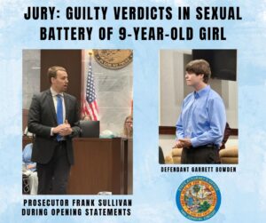Prosecutor Frank Sullivan called witnesses – including the victim – and presented evidence proving the defendant sexually battered the victim during the summer of 2017. The defendant was 15 at the time, the victim was 9.